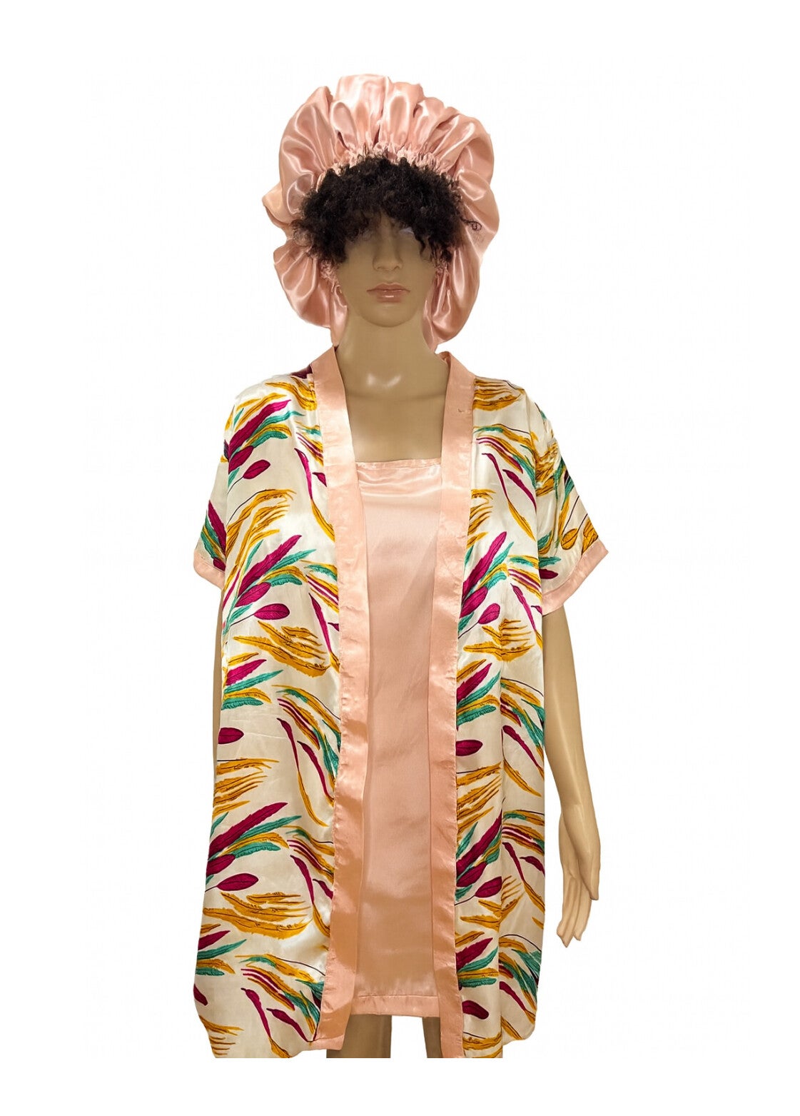 Ensemble Nuisette + bonnet en satin 3 pièces